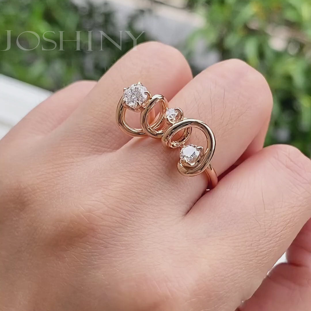 0.4ctw Round Cut Creative 3 Stone Twist Ring -JOSHINY