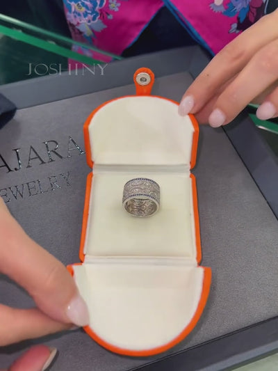 0.5Ctw Sapphire Vintage Carved Wide Ring-JOSHINY