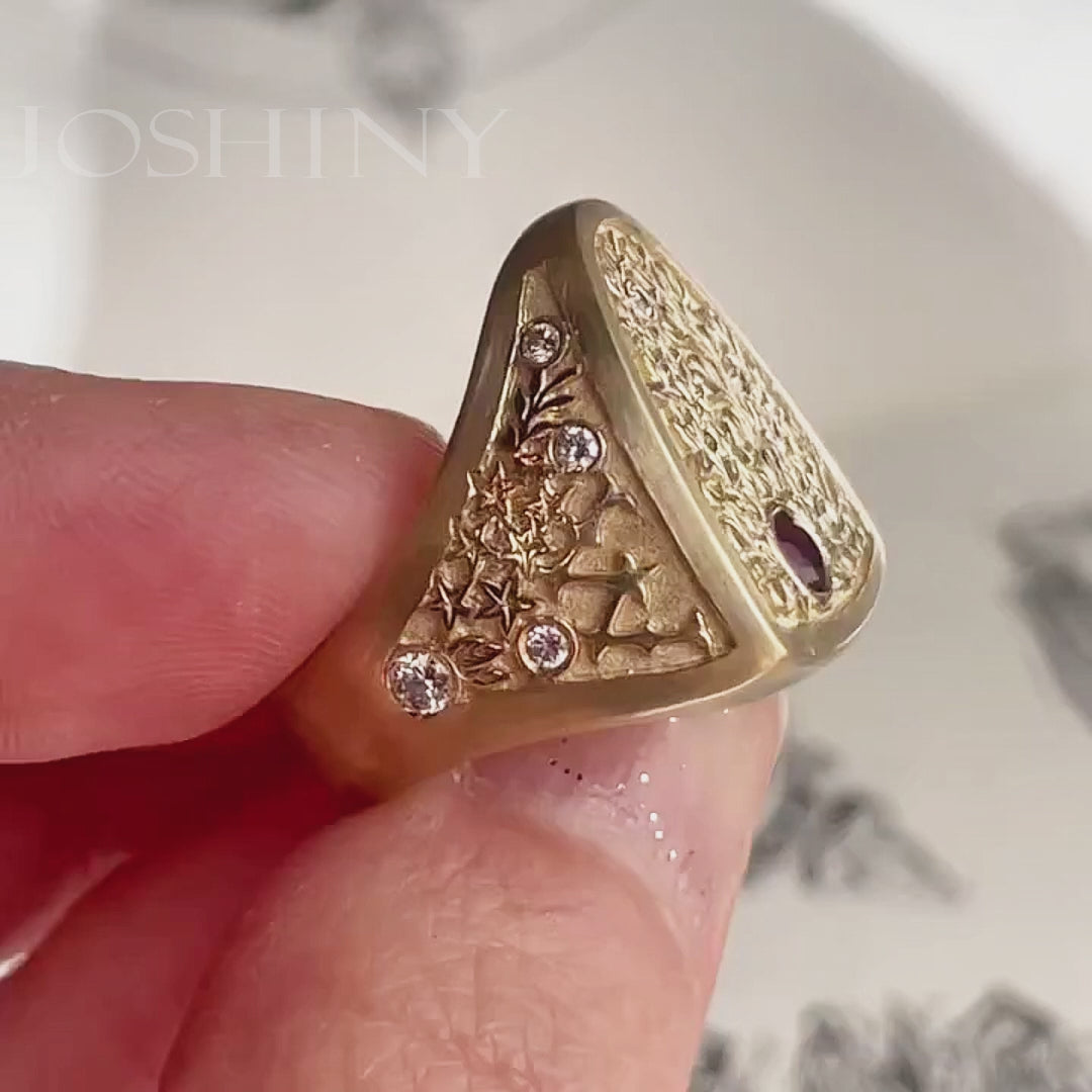 1.0ctw Hand Carved Ruby Gold Ring -JOSHINY