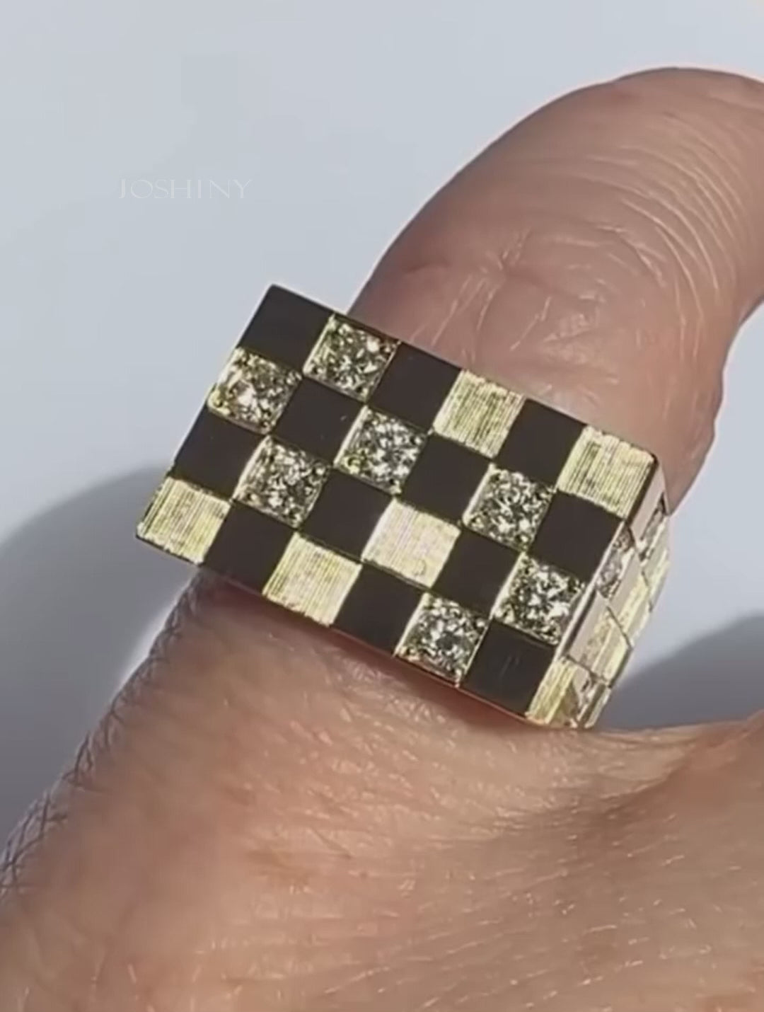 1.3Ctw Checkered Gemstone Wide Ring-JOSHINY