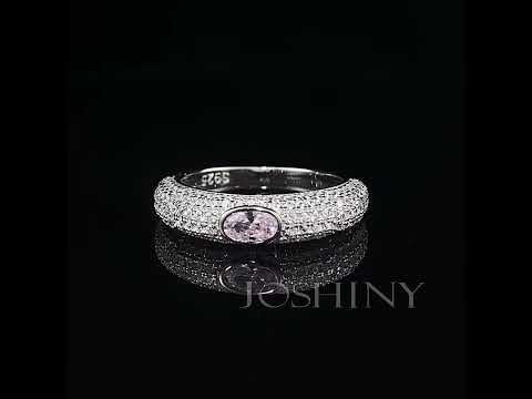 An oval pink stone stands out in a cluster of micropavé-set diamonds for elegance and glamour. The ring is made of 925 silver throughout with thick gold plating for a longer lasting lustre compared to other single layer plating. The style is individual and charming, bringing more possibilities for your fashion matching.