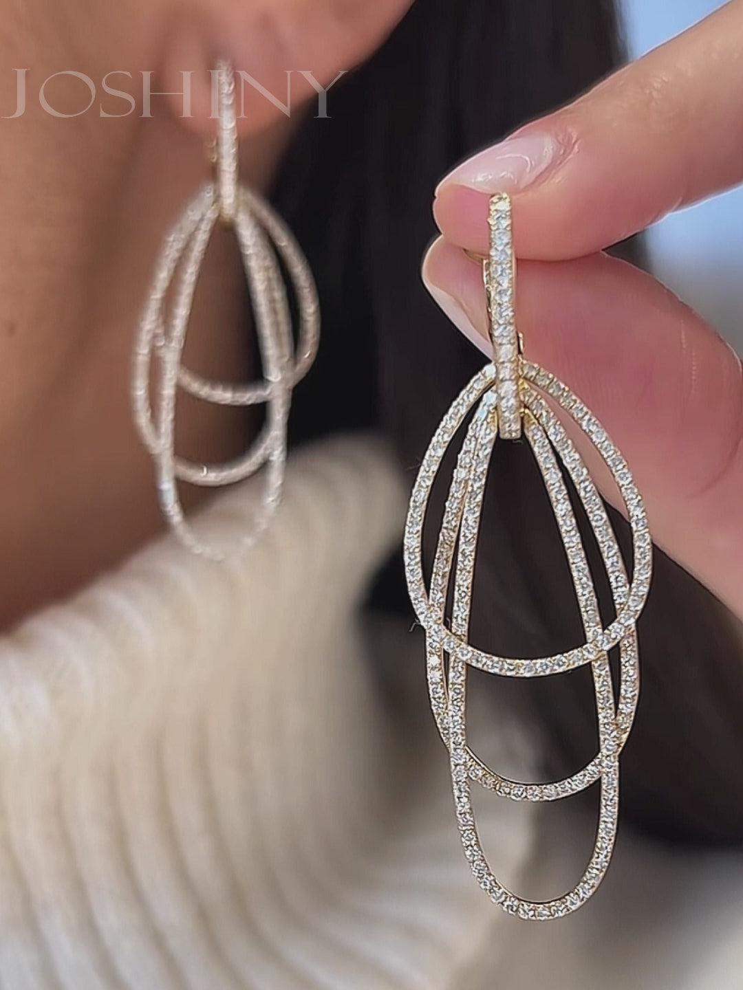 A pair of simple and stylish earrings with round cut white stones in full settings for totaling approximately 1.5 carats. A great piece to enhance your everyday ensemble. The earrings is made of 925 silver throughout, with thick gold plating, which makes the luster last longer compared to other single layer plating. The style is personalized and simple, bringing more possibilities for your fashion collocation.
