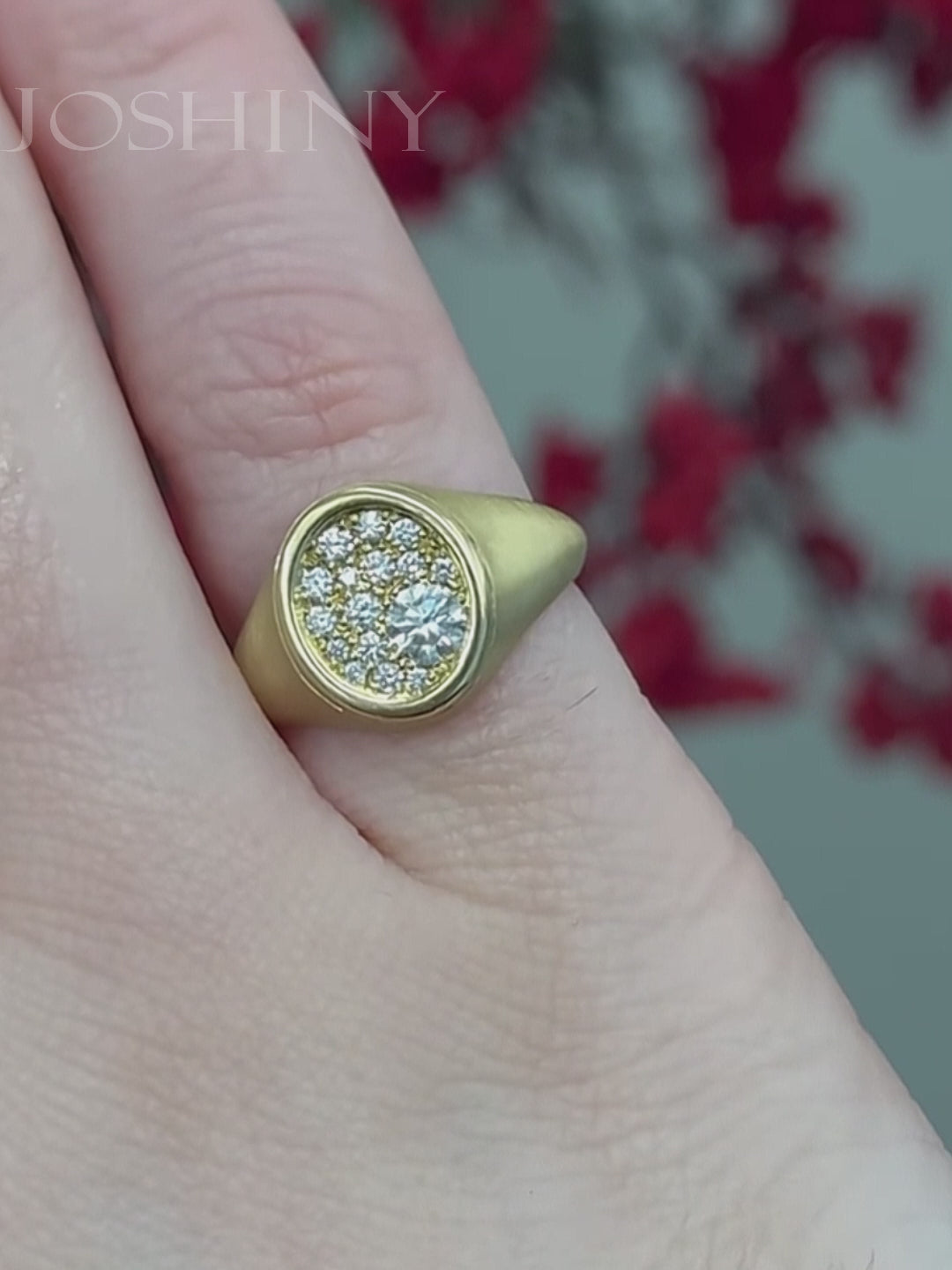 This is a vintage seal ring. Set with 1.5 ctw round cut white stones that look like stars. The ring is made of 925 silver throughout, with thick gold plating, which makes the luster last longer compared to other single layer plating. The style is personalized and simple, bringing more possibilities for your fashion collocation.