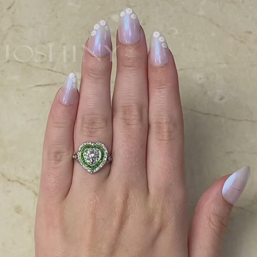 1.6ct Edwardian Heart Shaped Antique Diamond Ring -JOSHINY