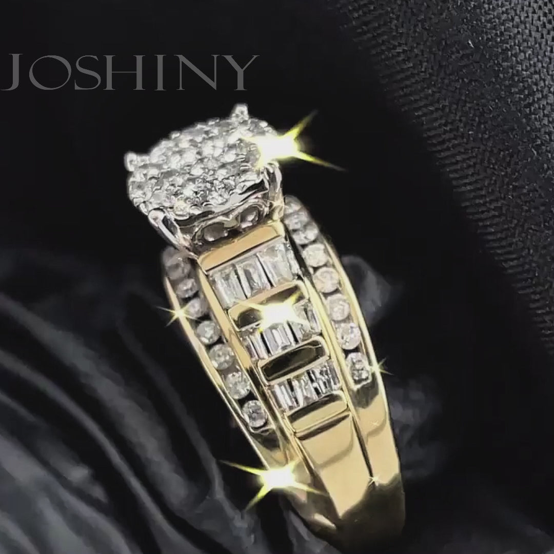 1.7ctw Round and Baguette Flower Engagement Ring -JOSHINY