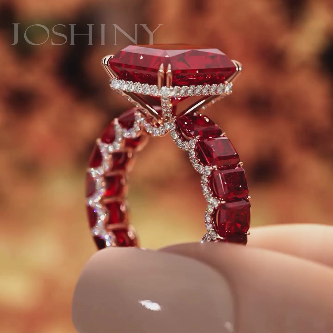 10.0ctw Enchanting collection of radiant cut ruby and sapphire rings-JOSHINY