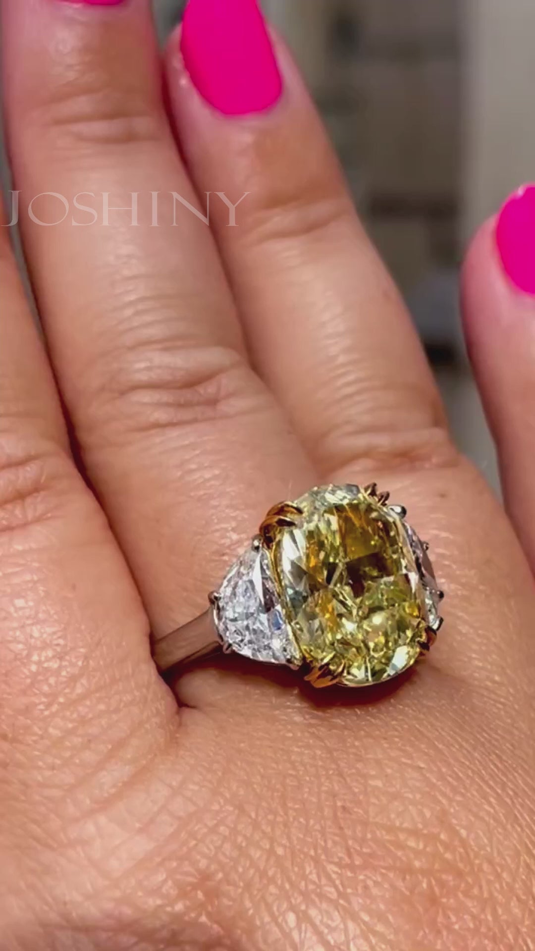 10.1 ct Oval Cut Yellow Gorgeous Dazzle Three Stone Engagement Ring -JOSHINY