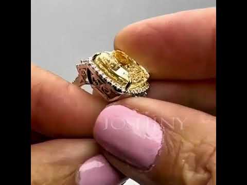 10.24ct Fancy Yellow Cushion Cut Gemstone Ring -JOSHINY