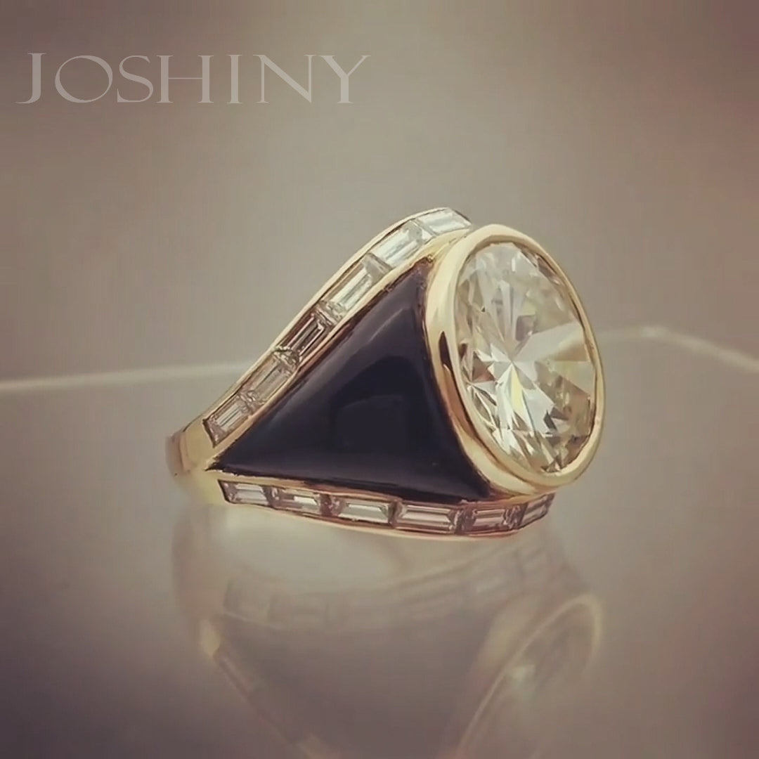 10.27ct Round and Baguette Cut Onyx Ring-JOSHINY