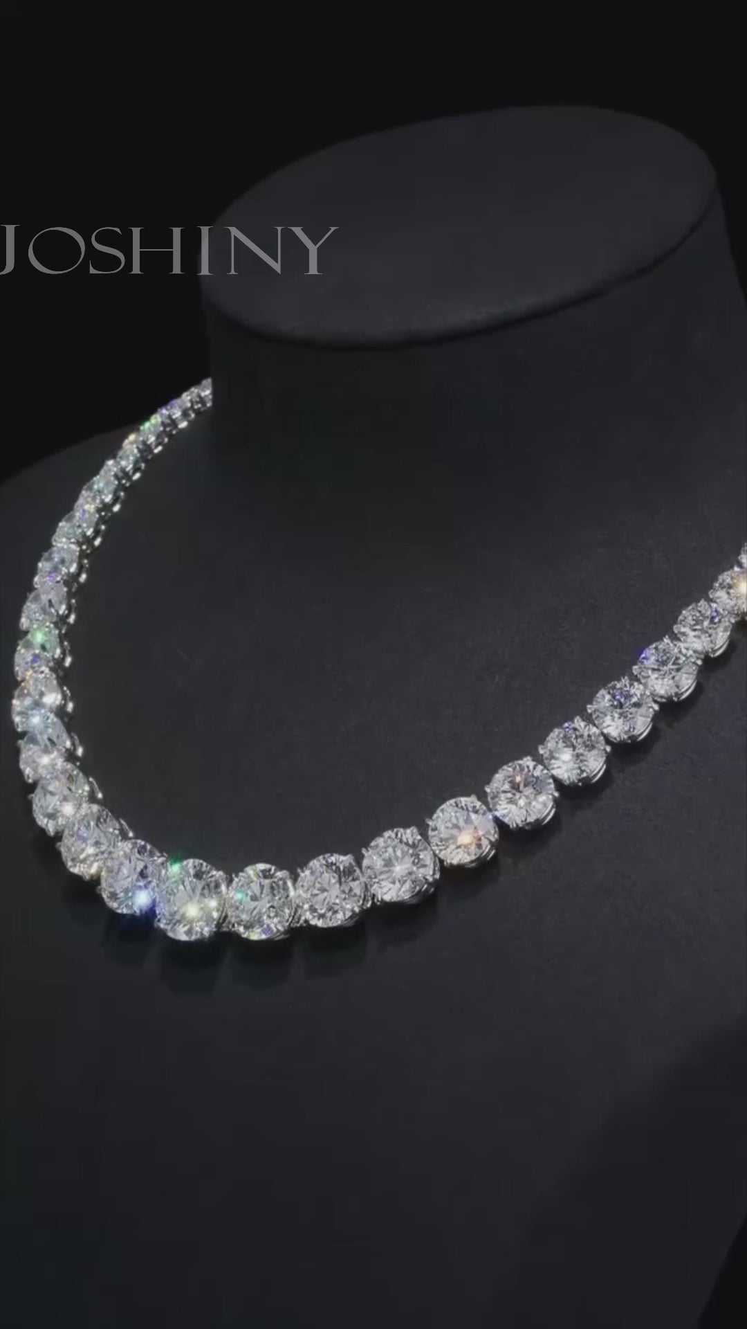 With a total weight of 100.05ctw, this exquisite necklace consists of flawless round stones ranging from 6.02 to 1.00ct, skillfully joined together like a symphony hospital.