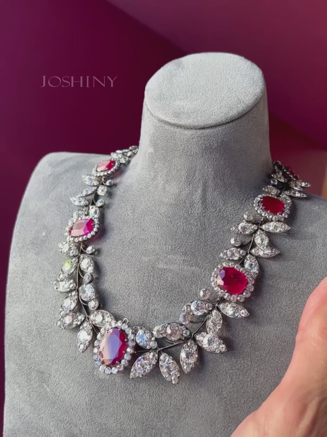 This ruby necklace is dazzling. Exquisite craftsmanship is evident in the setting of precious rubies and sparkling gemstones, showcasing luxurious elegance and symbolizing timeless grace.