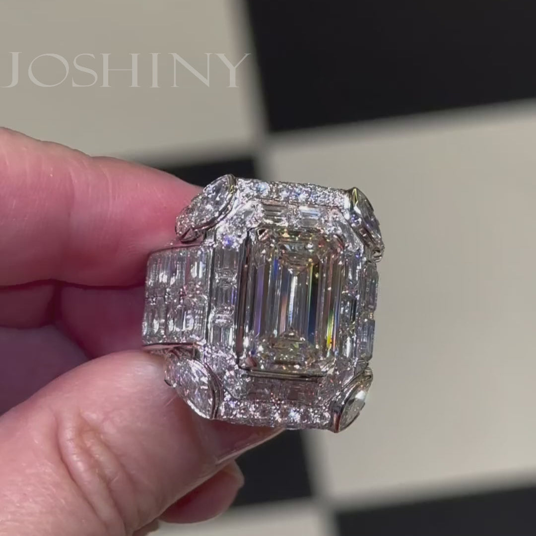 12ctw Emerald Cut Full Diamond Champion Ring -JOSHINY
