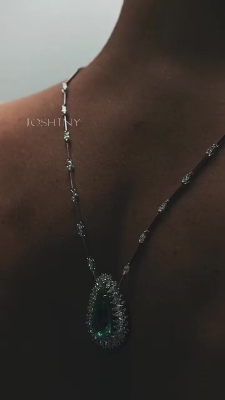 12Ctw Pear-shaped Emerald Pendant Necklace-JOSHINY