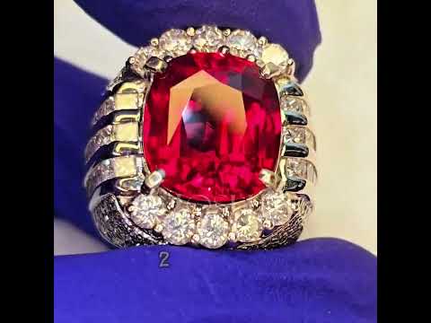 12ctw Perfect Cushion Cut Red Gemstone Ring -JOSHINY