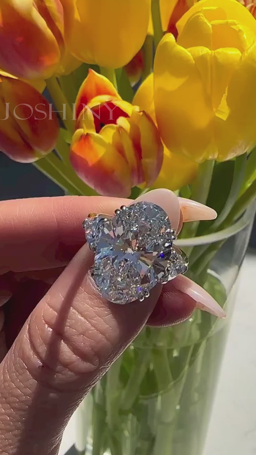 13ct Oval Cut Classic Three Stone Engagement Ring -JOSHINY