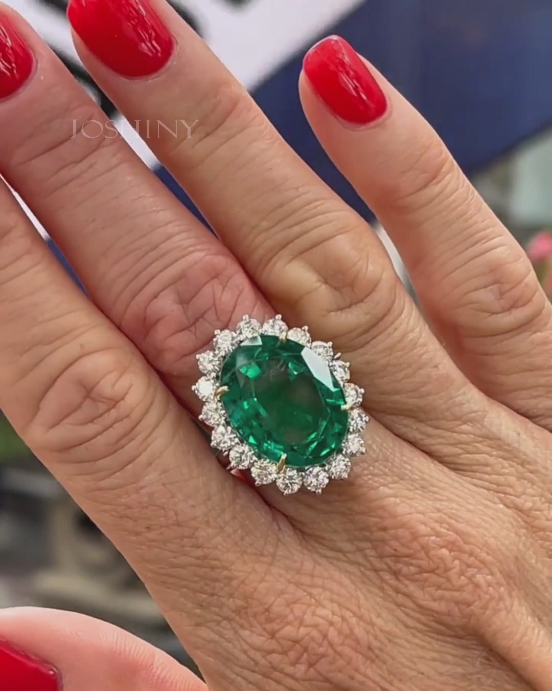 14.6Ctw Vintage Oval Emerald Ring-JOSHINY