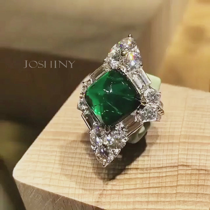 15.05Ctw Convex Emerald Sugar Bread Ring-JOSHINY