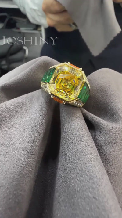 15Ctw Ascher-cut yellow multicolored gemstone ring