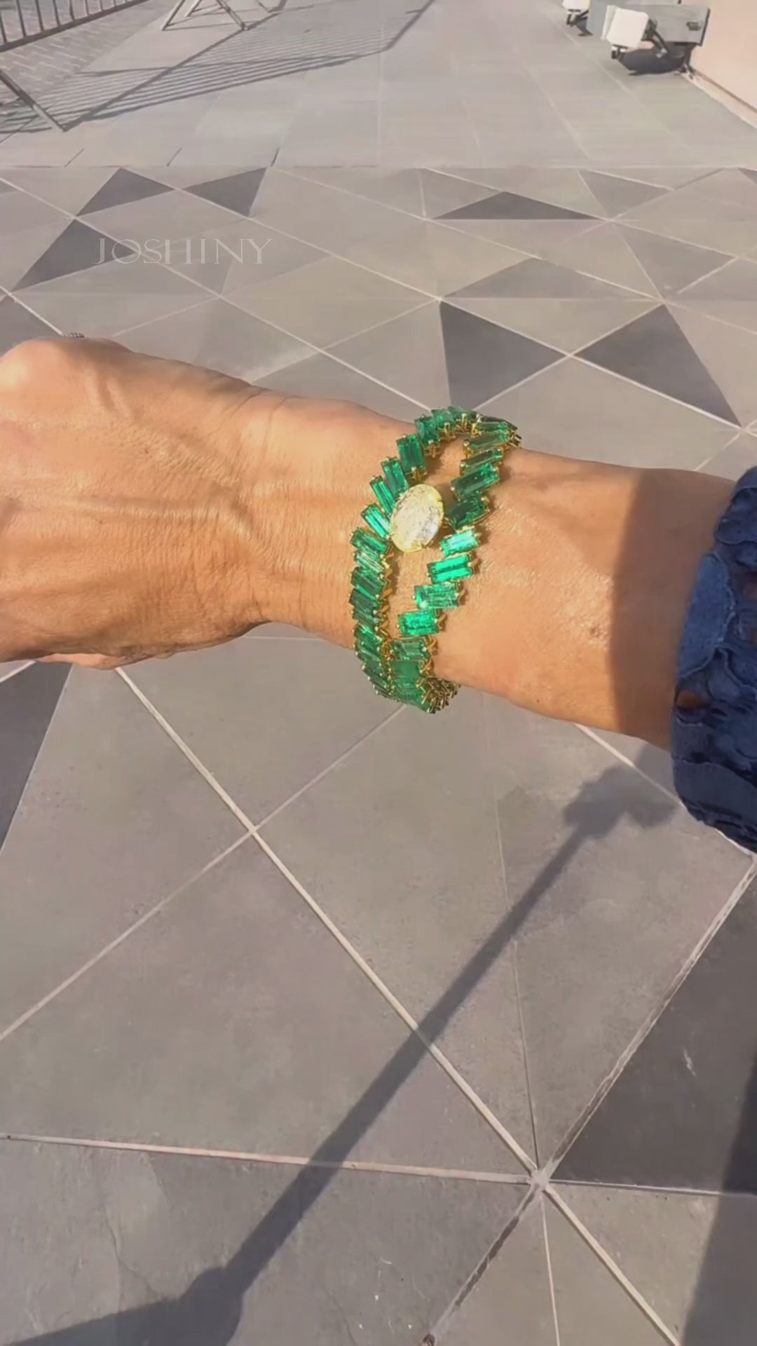 This emerald bracelet features a gold-plated setting and a central gemstone embellishment. Exuding elegance and brilliance, it showcases exceptional taste and is the perfect accessory for everyday wear or special occasions.