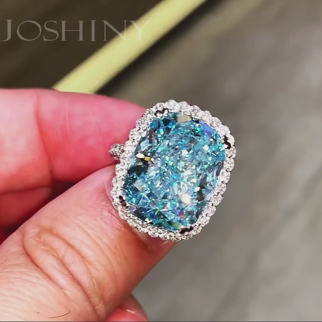 17 ctw Cushion Cut Blue Gemstone Halo Cocktail Ring -joshiny