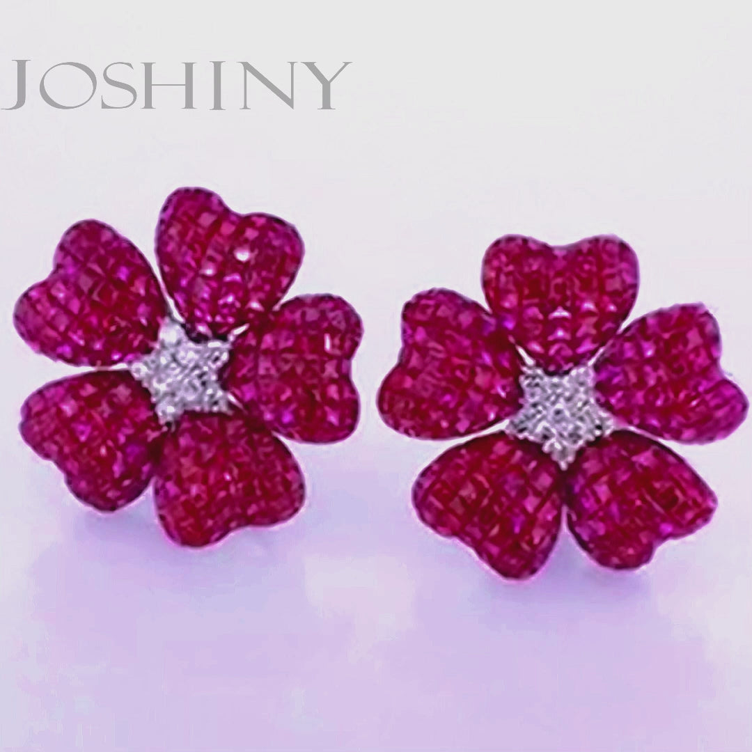 17ctw Invisible Set Ruby Flower Earrings