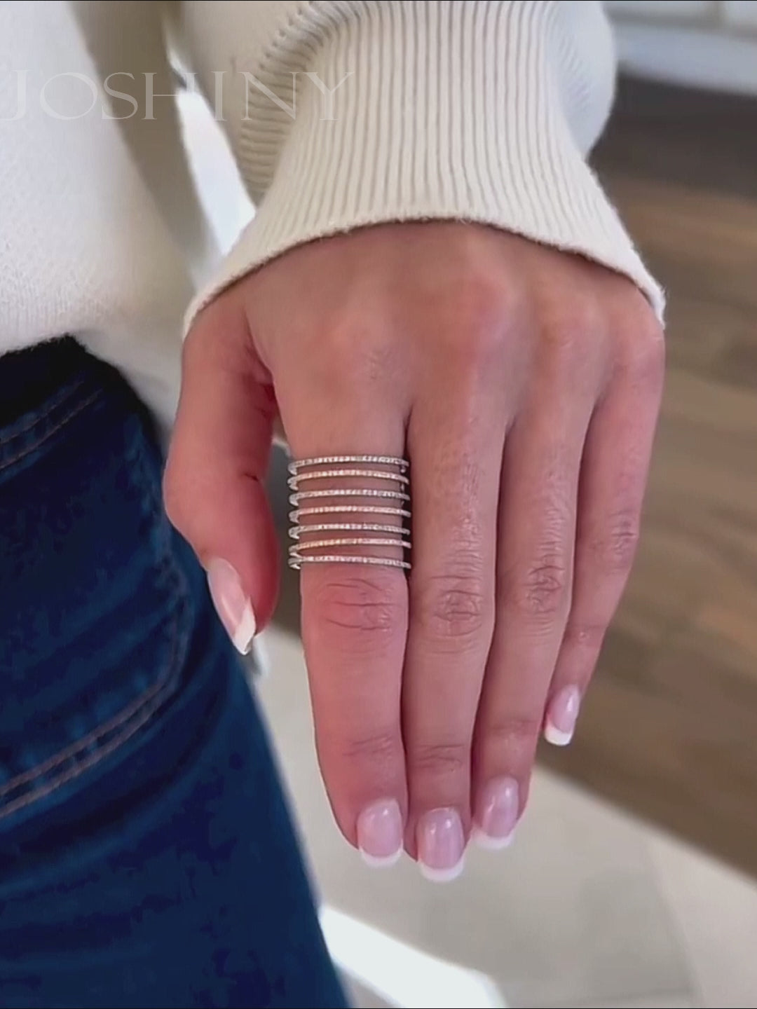 Unique detachable two-color spiral ring. Classic and stylish spiral ring set with round cut white stones for total weight approximately 1 carat. Gold triple band ring and silver quad band ring can be combined and split.