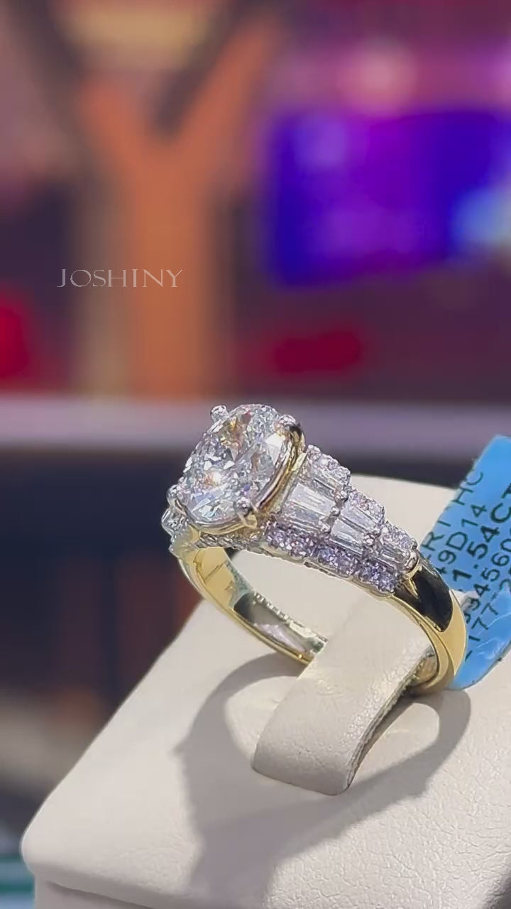 2.01Ctw Oval Rectangular Gemstone Two-Tone Gold Engagement Ring-JOSHINY