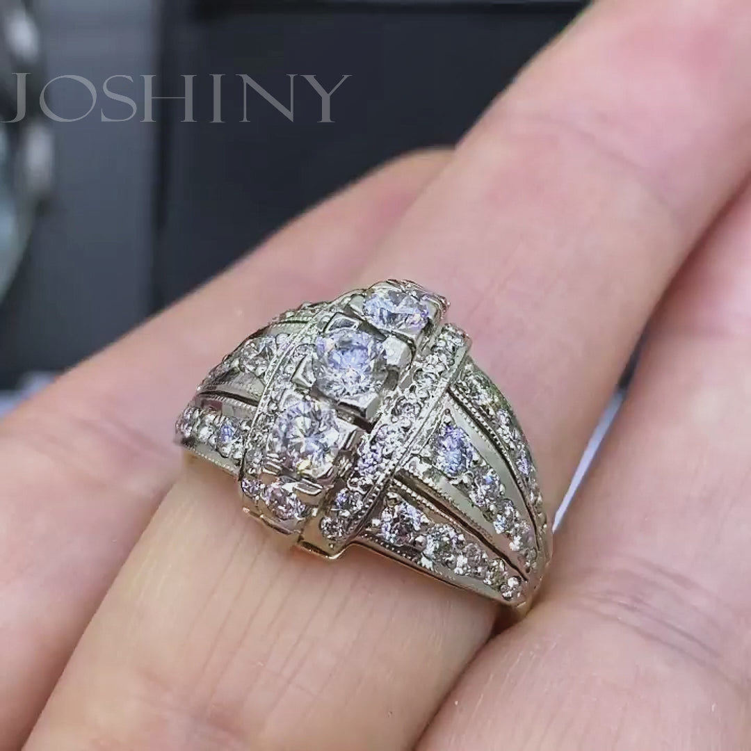 2.01ctw Vintage Gold and Silver Two Colour Gemstone Diamond Ring -JOSHINY