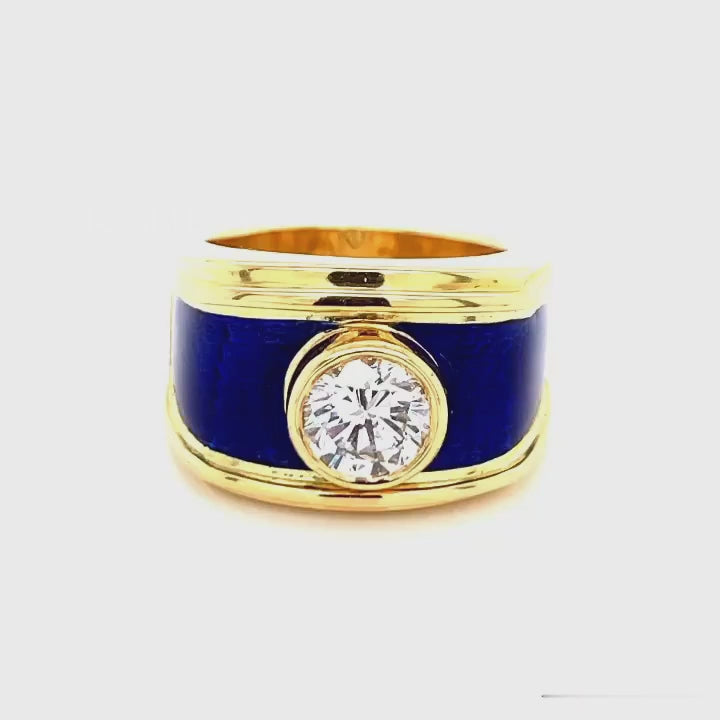 Antique 18K gold plated with blue enamel ring, set with a 2.10-carat bezel gemstone.