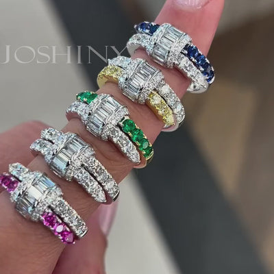 These rings are a dreamlike chapter in the world of jewelry. The main stone is either a clear square diamond or a bright colored gemstone, surrounded by crushed diamonds like starbursts. Intertwined with gold and silver rings, the colors collide in a unique rhythm, and each ring carries the craftsmanship, a sparkling poem on the fingertips that speaks of luxury and romance.