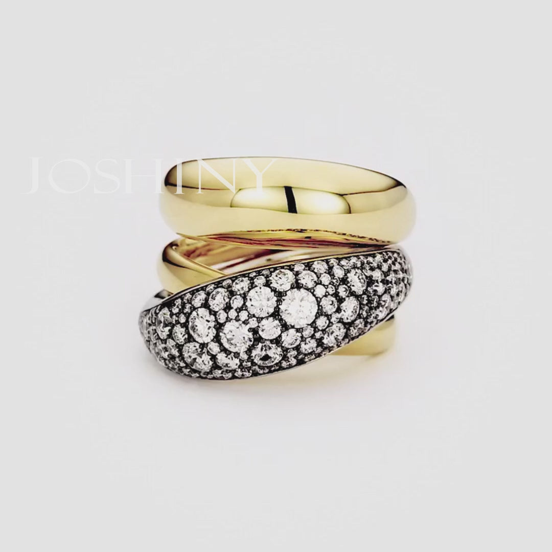 Another ring, the white gold and yellow gold triple ring, showcases a modern mixed metal style, with full white gold and yellow gold bands, seamlessly combined using the traditional Victorian double-layer craftsmanship. The bold volume and sexy curves complement each other, showing a powerful aura whether in work or leisure occasions.
