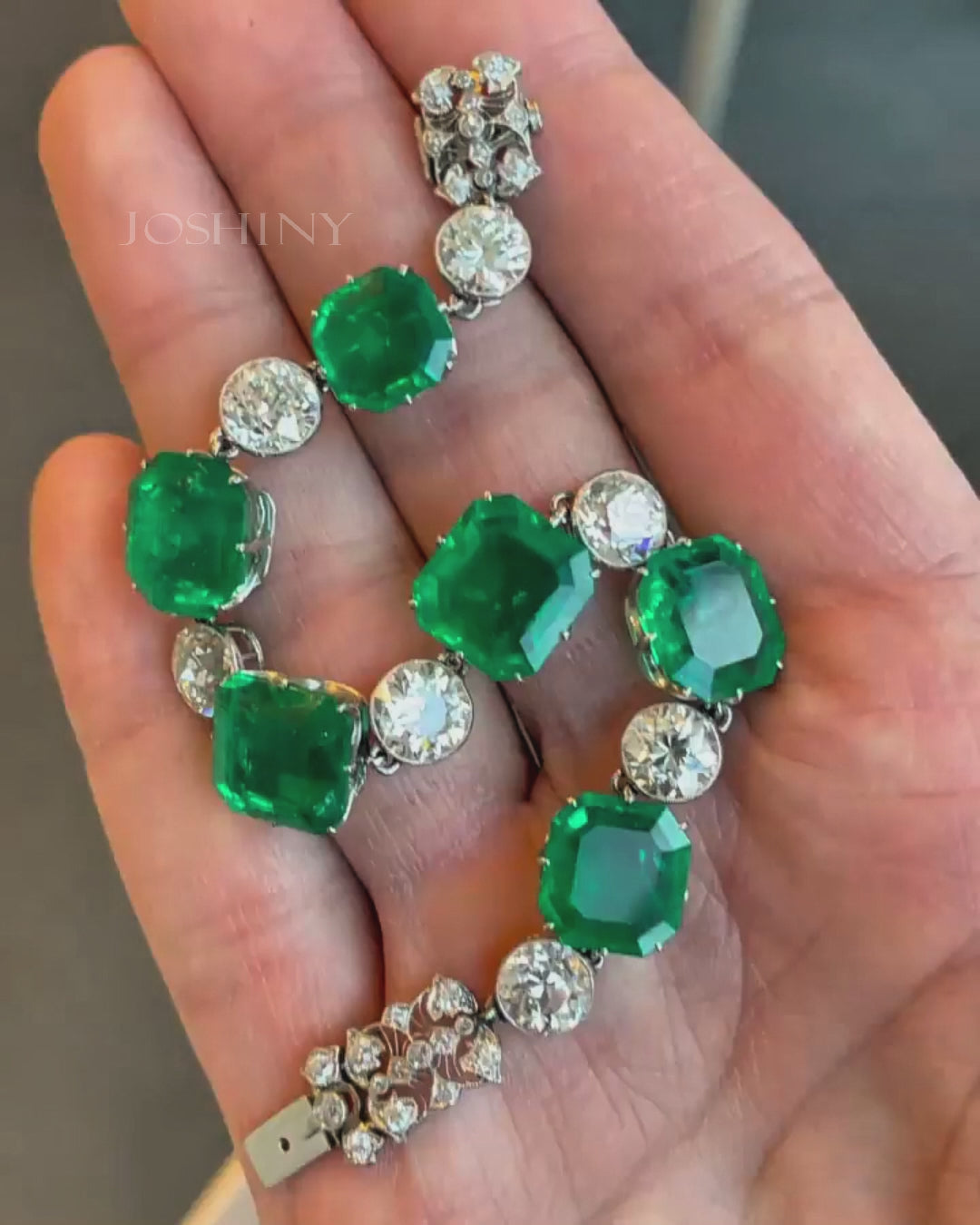 This magnificent emerald bracelet is exquisitely crafted and dazzling. Each full emerald and sparkling gemstone complements the other, exuding a noble and elegant charm, making it a perfect choice for your collection or as a gift.