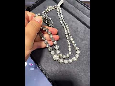 Embodying timeless elegance, this vintage platinum necklace features an impressive total of 22.67 CTW of round gemstones, meticulously arranged for a radiant display. The exquisite craftsmanship highlights each gemstone's brilliance, making it a perfect choice for special occasions and sophisticated ensembles.