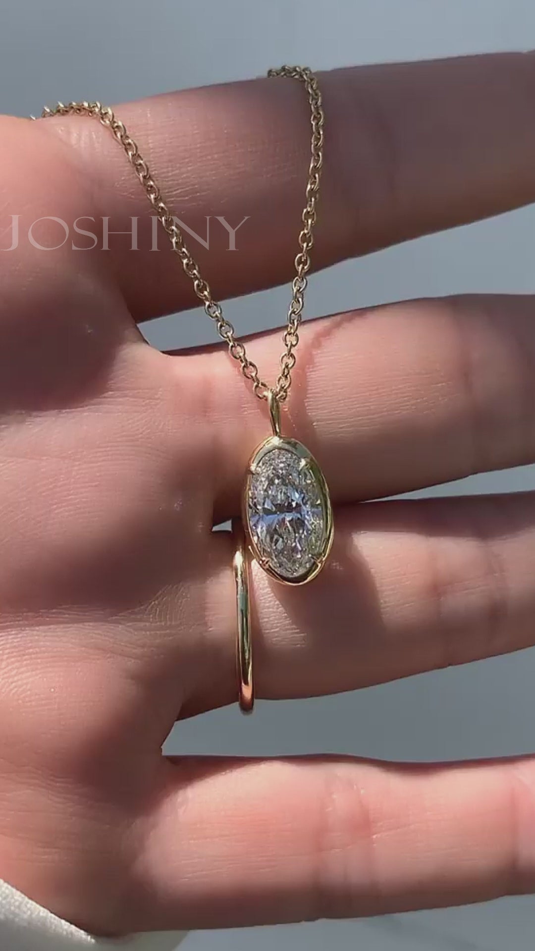 Antique style 2.00ct oval cut diamond pendant with single diamond bezel setting, simple yet elegant. The necklace is made of 925 silver with thick gold plating, which makes the luster more durable compared to other single-layer plating. The style is personalized and simple, bringing more possibilities for your fashion collocation.