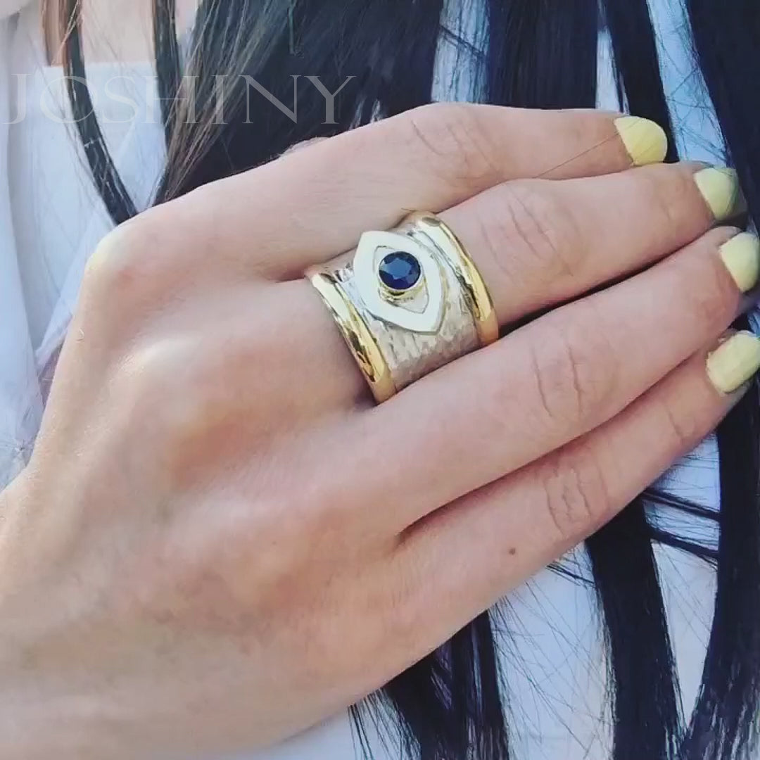 2ct Round Cut Blue Gemstone Extra Wide Protective Eye Ring -JOSHINY