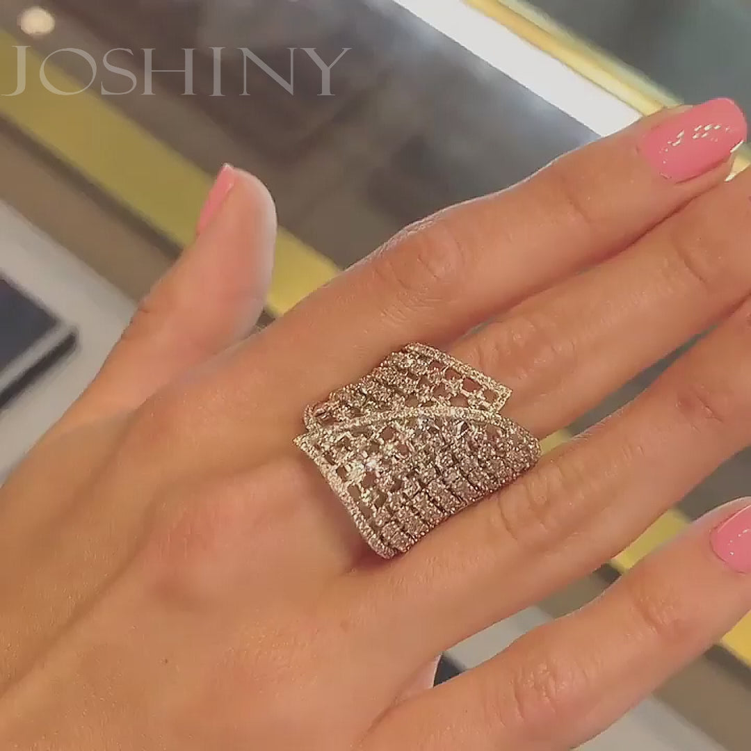 2ctw Round Cut White Gemstone Mesh Fashion Ring -JOSHINY