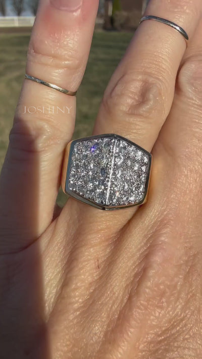 Don't hesitate any longer with this rugged, gleaming gold ring. This stunning ring, set with a cluster of 2-carat round gemstones, is now available. Click our purchase link to buy.