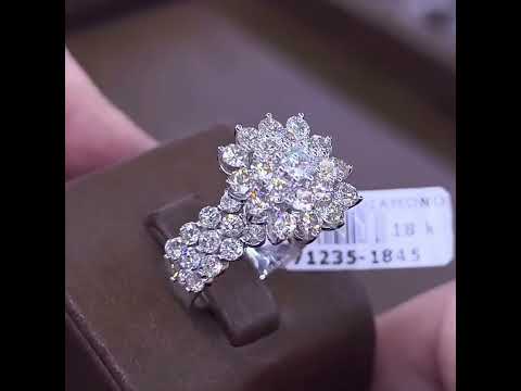 Cluster set, with a superbly crafted bottom sitting and as little metal cut-out as possible, allowing more light sources to refract the fire of the stones, unusually sparkling!