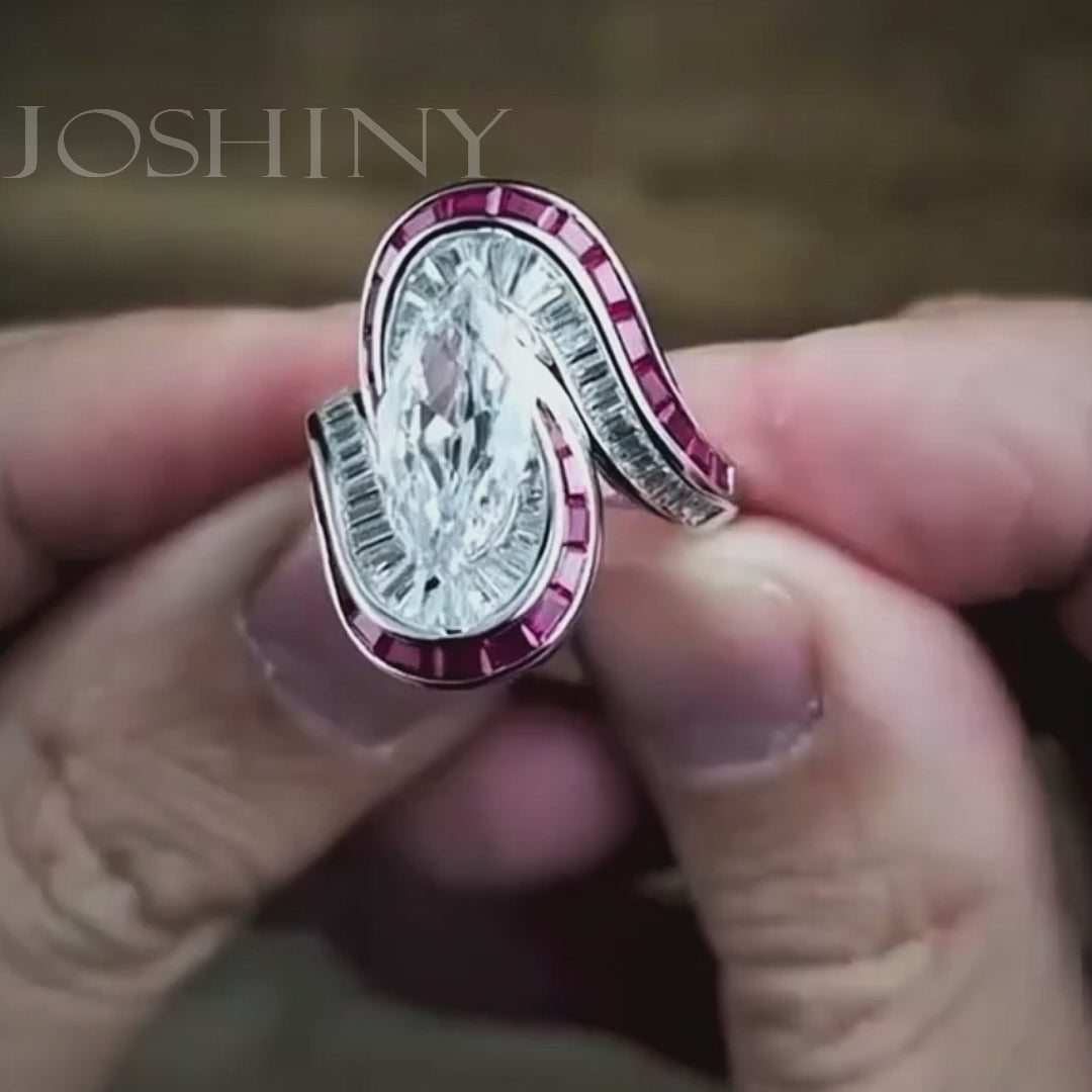 3.0ct Marquise Cut and Ruby Ring -JOSHINY