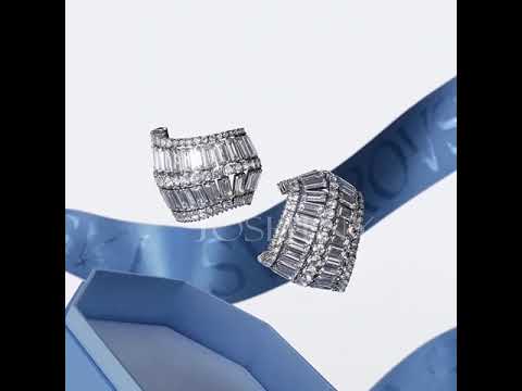3.0ctw Round and Baguette Cut Five Row Gemstone Stud Earrings -JOSHINY