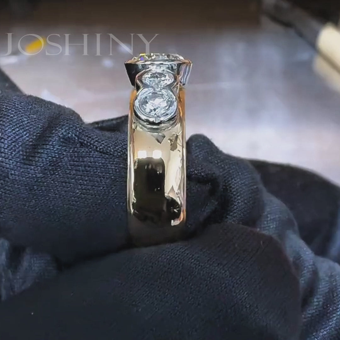 3.12ctw Round Cut Bezel Set 5 Stone Engagement Ring -JOSHINY
