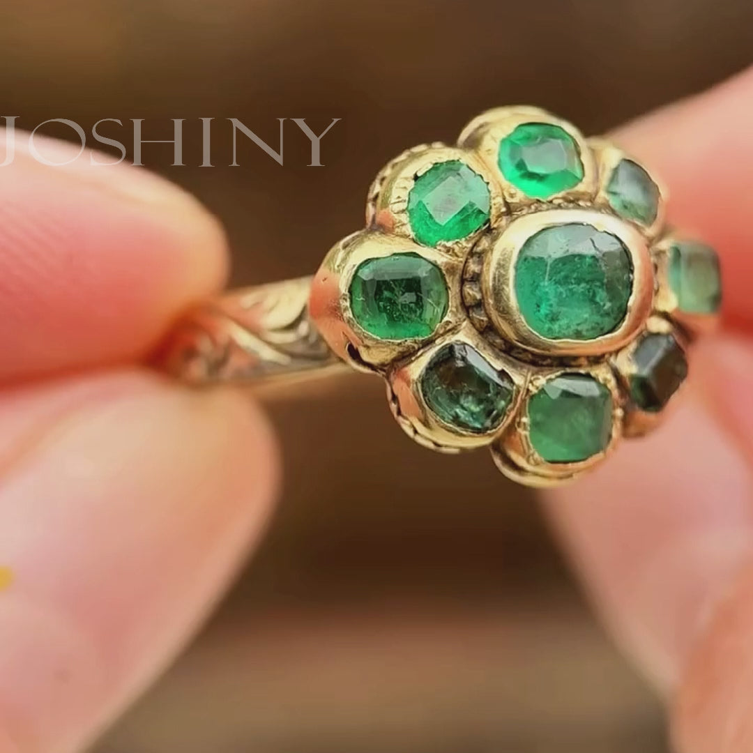 3.23Ctw Emerald Cluster Vintage Gemstone Ring-JOSHINY