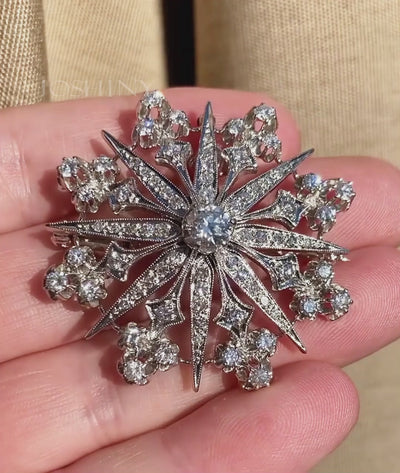 3.23Ctw Round Gemstone Snowflake Pendant Necklace Brooch-JOSHINY