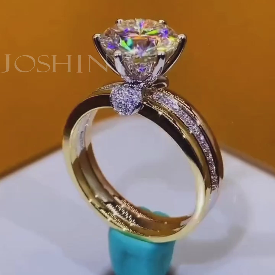 4.0ct Round Cut Art Deco Gold and Silver Bicolour Engagement Ring -JOSHINY
