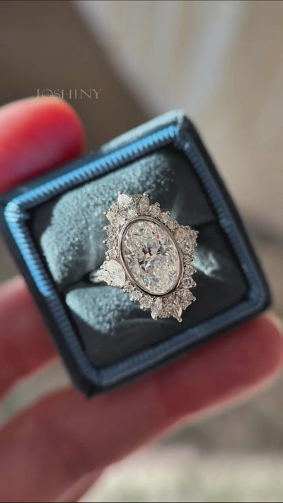 This dazzling oval ring radiates light. The exquisite wreath setting exudes luxury and elegance. It's the perfect symbol of eternal love and the top choice for your precious moments. Its unique design is exclusively for the one and only you. Wearing it will instantly make you the center of attention, letting your beauty shine eternally.