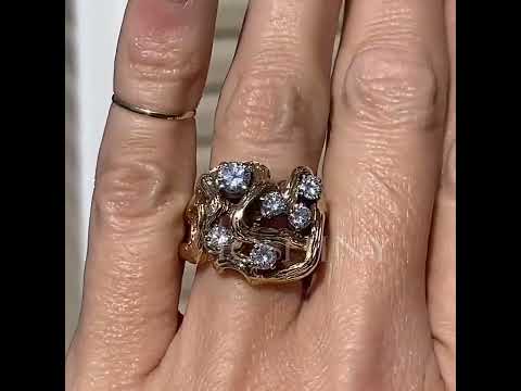 Experience true craftsmanship and unrivalled elegance in this extraordinary ring rich in the vicissitudes of time and ancient artistry that is sure to captivate and stand the test of time. 6 round brilliant cut gemstones complement each other to create a balanced sparkle, total weight 3.5ctw.