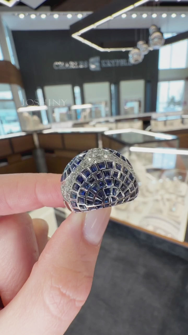 This ring is set with deep blue sapphires and dazzling white gemstones, showcasing exquisite craftsmanship and a unique design. It's as if the starry sky has been condensed onto your fingertip, exuding understated luxury and perfectly symbolizing eternal love. Whether for everyday wear or special occasions, it's sure to be a showstopper.
