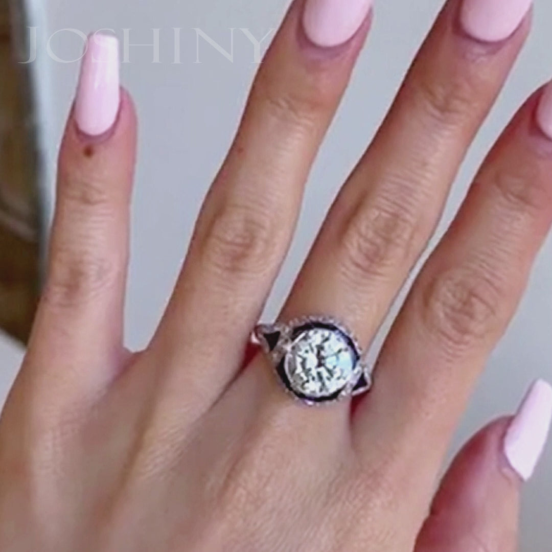 This is an Art-Deco style ring with a round cut main stone. The ring is made of 925 silver throughout with thick gold plating, which makes the shine more lasting compared to other single layer plating. The vintage style brings more possibilities for your fashion collocation.