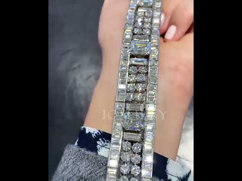 Isn't this vintage diamond bracelet so glamorous? ❤️🔥❤️🔥❤️🔥 Round and baguette gemstones set off the brilliance of the large octagonal brilliant cut stones. Total weight approximately 30.3ctw.