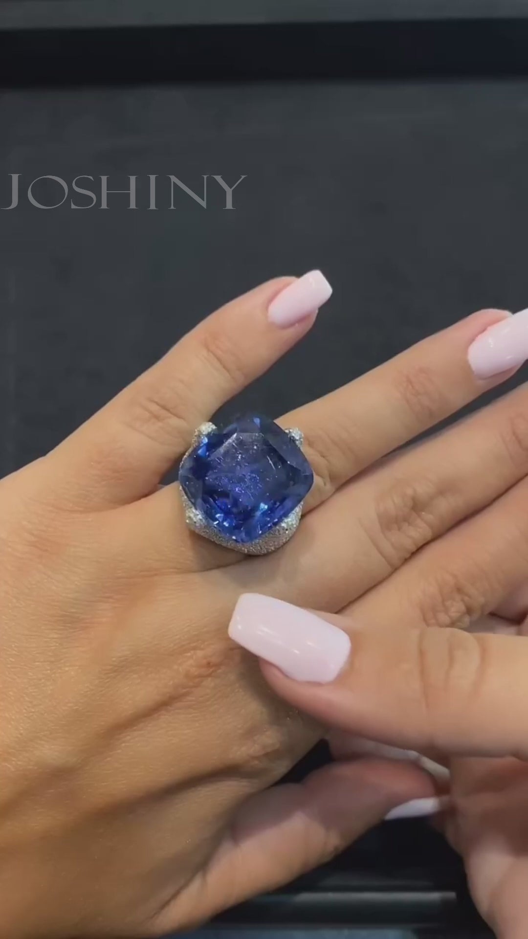 This is the most extraordinary 30ct cushion cut blue stone, set in the iconic infinity setting, iced to perfection...